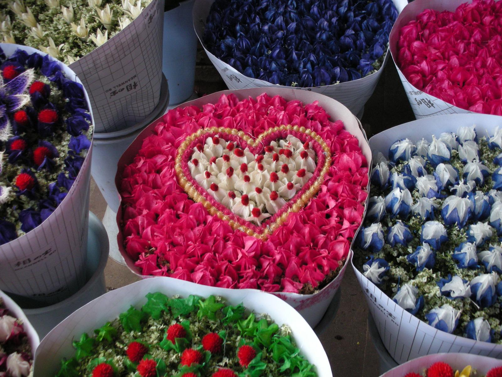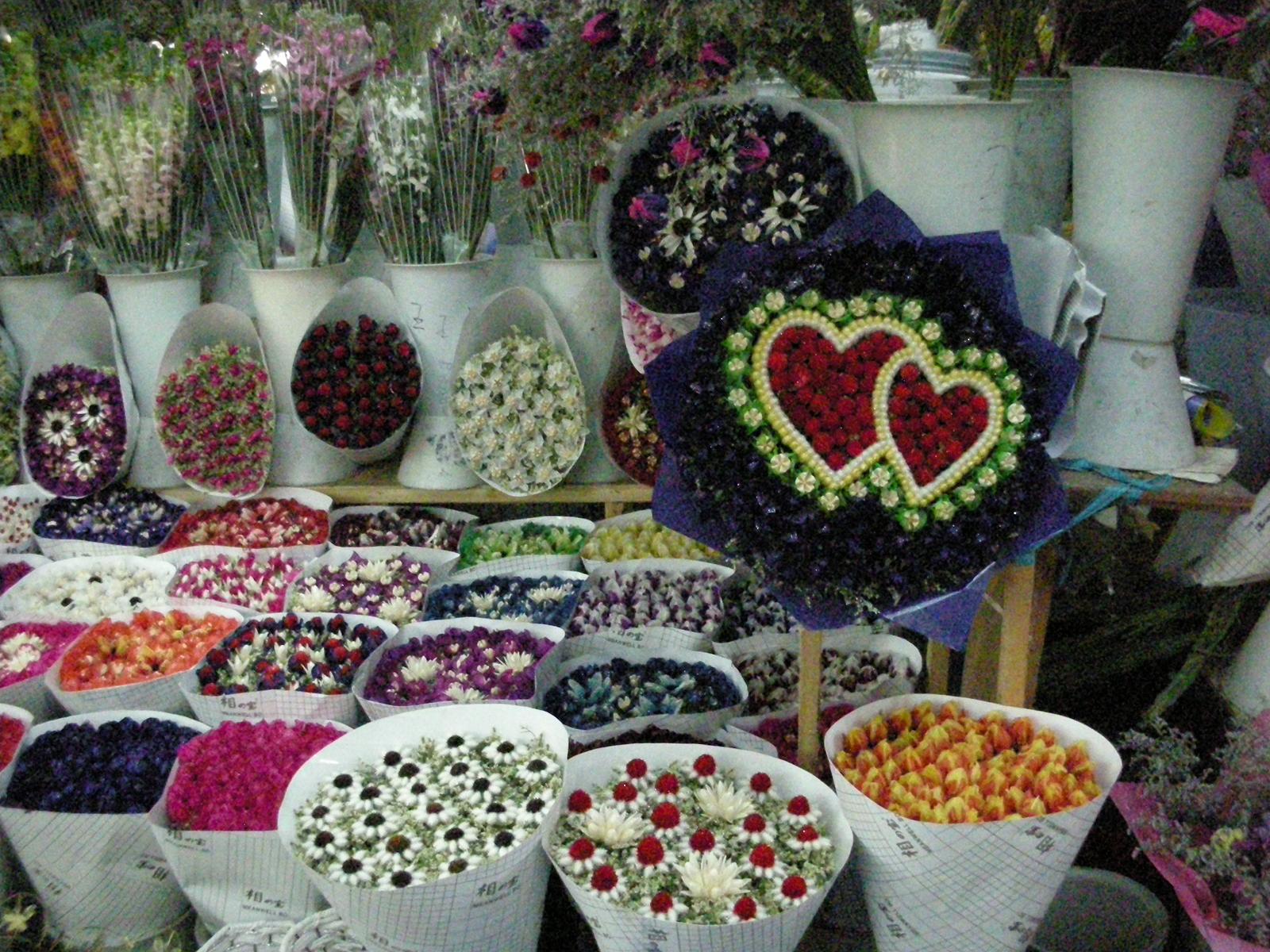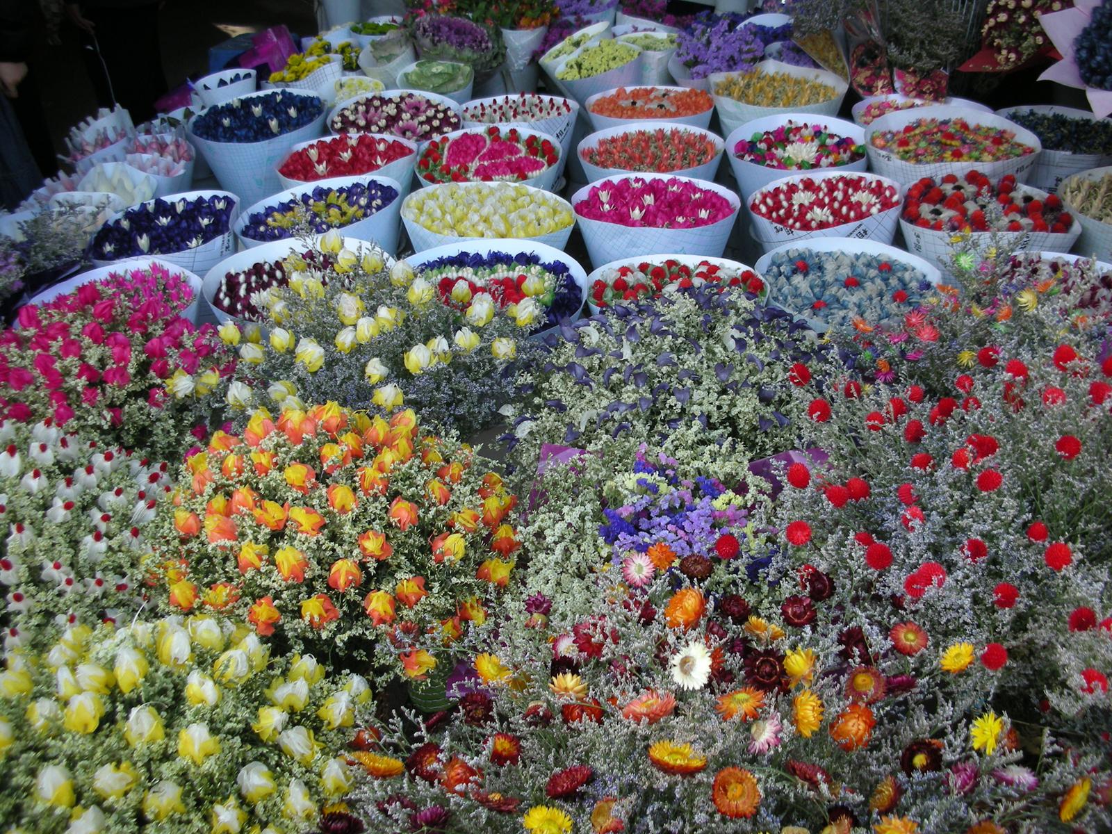 街を歩いていると街角や道端のいたるところに花の鉢が置かれ、花屋さんを多く見かけます。花の市場が数箇所あり、市場へは周辺の農家が自転車や荷車等で直接花を運び込みます。生花、各種のプリザーブドフラワー(特殊な技術で加工し、まるで生花のような質感のまま、長期保存できるようにしたもの)、水耕栽培の花および鑑賞用の生花と盆栽等、多くの生花が店頭に置かれていました。私も今回の旅行で花屋の綺麗な花を見かけ、つい買いたくなりましたが、旅行中の身であり、手荷物となるため、断念しました。