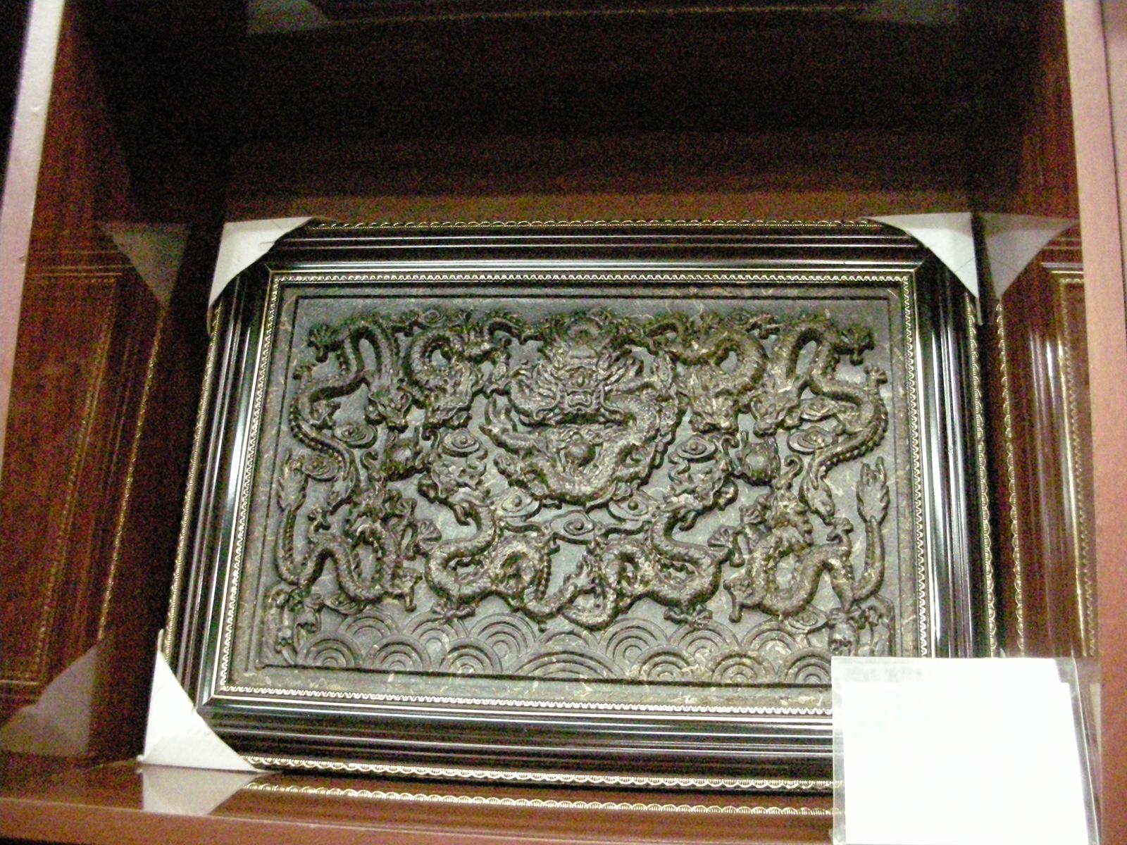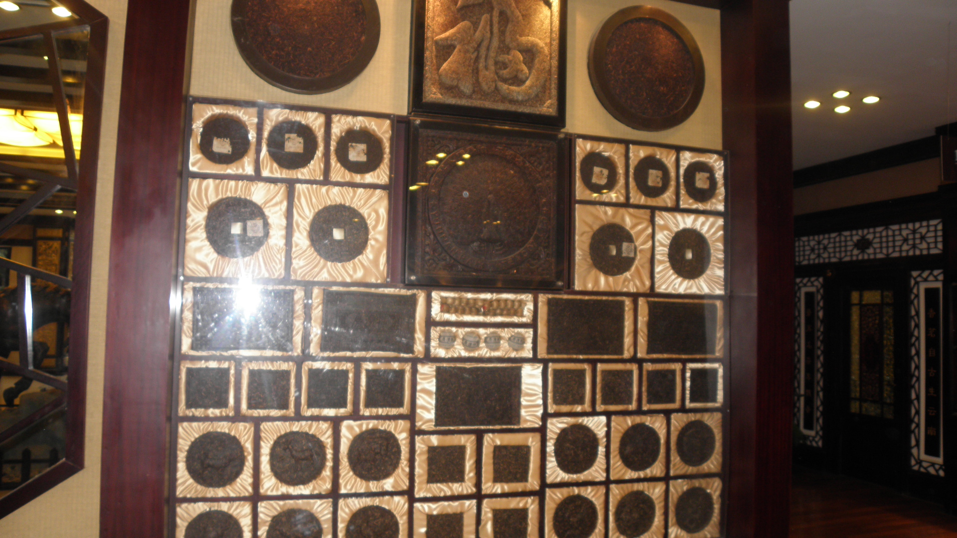 (龍の壁画のように圧縮されたプーアル茶の茶葉。)