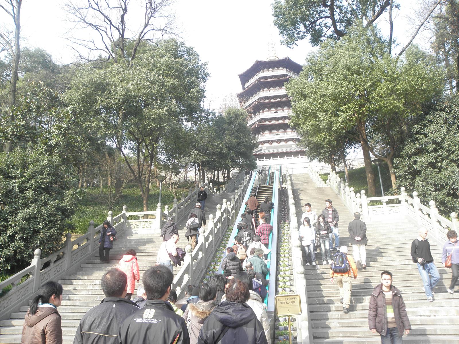 雷峰塔は「雷峰夕照」として西湖十景に数えられており、特に夕暮れの風景が美しいとされています。最上階からは西湖の至る所から見ることができます。雷峰塔は明の時代に戦火で放火され、レンガの塔身のみが長い間、残っていましたが、雷峰塔のレンガが病気や安産に効果があるという伝説により、塔のレンガの破片が長い間に人々によって何度も持ちさられたことで脆弱になり、1924年に突然倒壊してしまったようです。現在の雷峰塔は鉄筋コンクリートで再建されたものですが、建物の地下は建設当時の遺跡が展示されています。