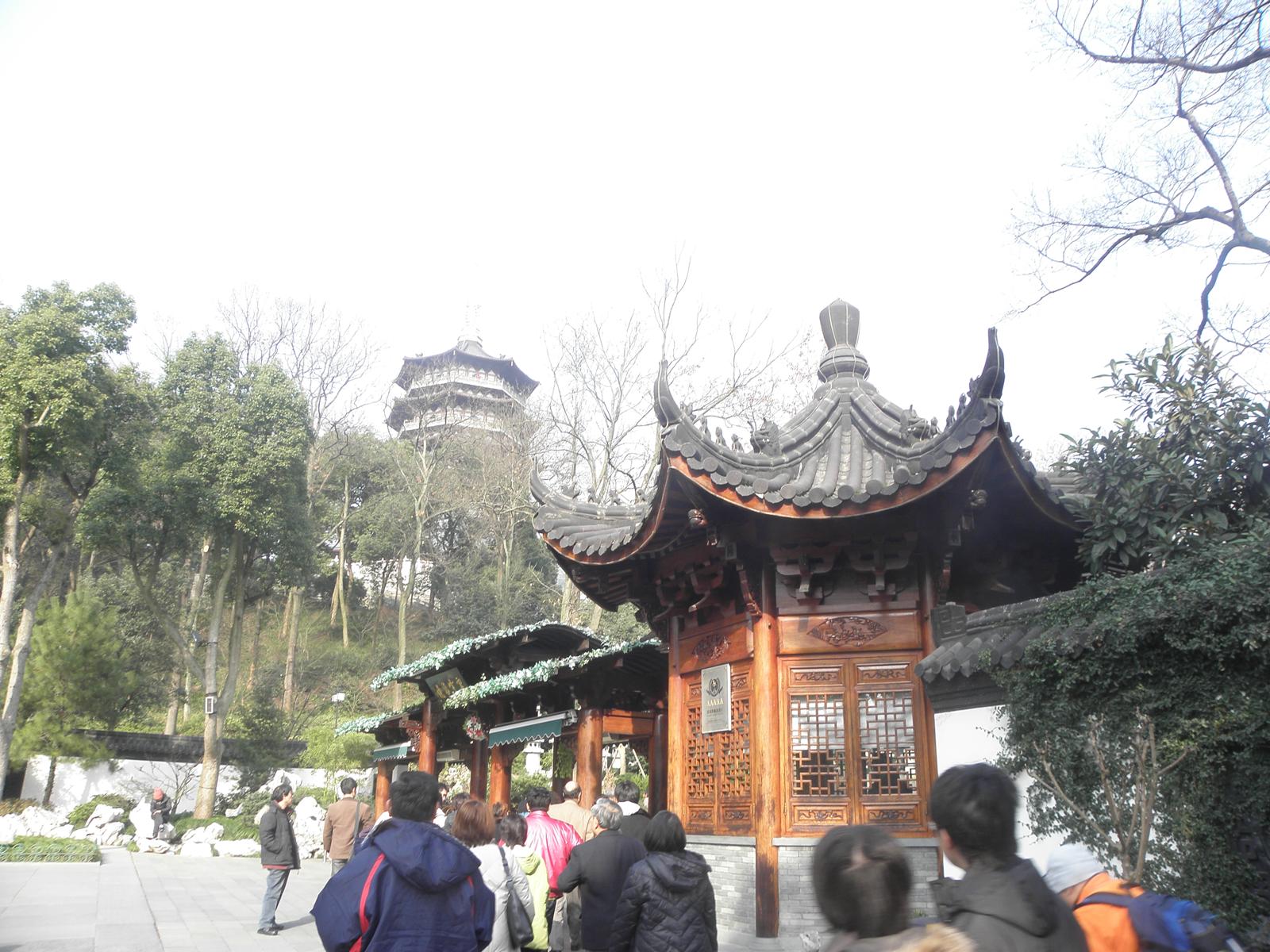 (左手に呉山の塔、右端に浄慈禅寺があります。汪荘の敷地が下にあります。)