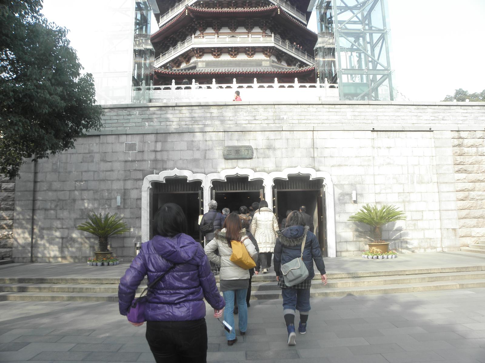 (雷峰塔の一階。ガラスでできたシースルーな現在的建物です。)
