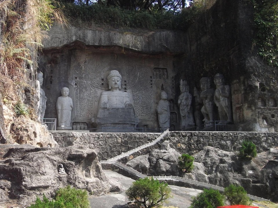 (5)楽山大仏-四川省楽山市にある、弥勒菩薩を象って彫られた巨大な磨崖仏(石仏)であり、石窟寺院の一種である。