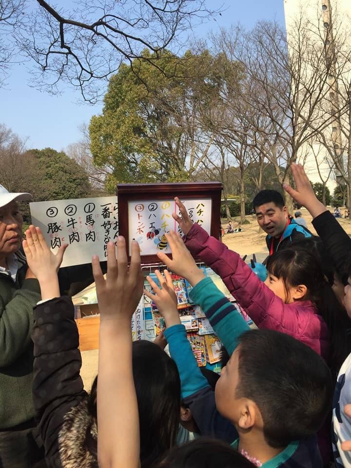 (仁徳天皇陵前は広い公園が多く、市民の憩いの場となっています。昔ながらの紙芝居もしていました。)