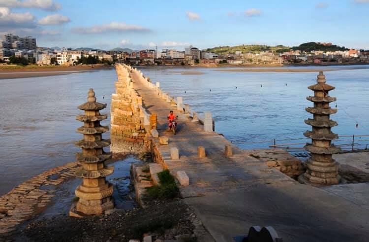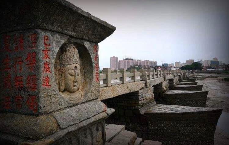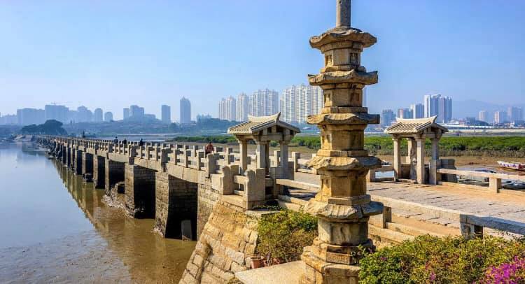 洛陽橋は、宋代の1059年に完成したもので、恵安県から泉州市に至る洛陽江に架かる、花崗岩で造られた橋です。交通・輸送の要衝ですが、波が荒い場所なので、独特な工法で造られています。宋の陳称など有名な詩人や書物にも洛陽橋とその眺めの美しさを謳った作品が多くあるように、水との景色の調和が大変芝らしいです。