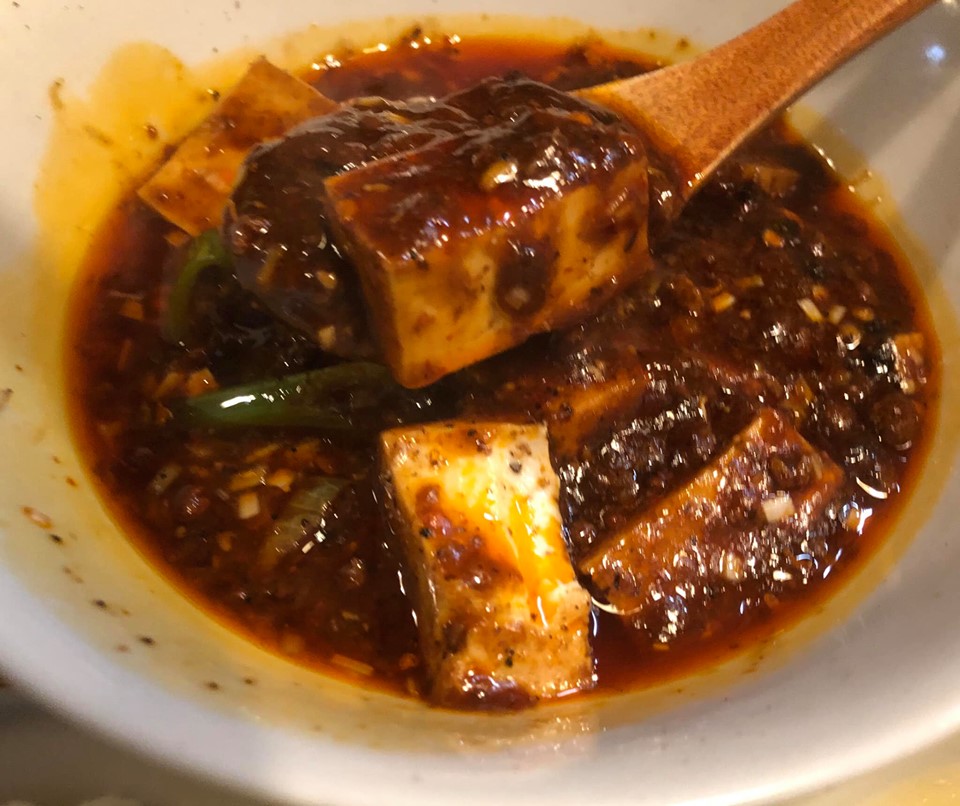 看板料理の麻婆豆腐は、花山椒の量が半端なく、ひき肉の食感、形の崩れてない豆腐、さらにはネギのサクサク感があり、全て完璧!うわさにたがわぬ美味しさでした。四川で食べた陳麻婆豆腐に劣らないくらい美味しかった!