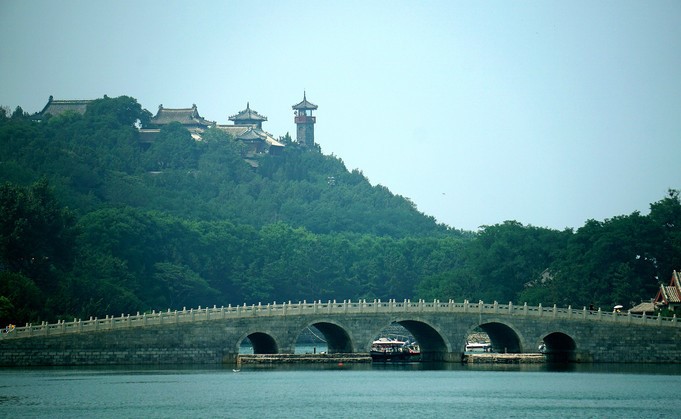 (渤海と黄海を分ける岬の先端に作られた蓬莱閣。)