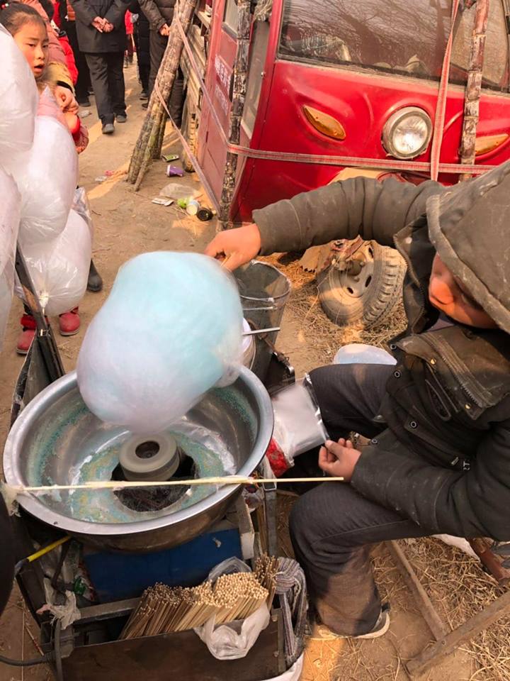 写真は彼の故郷の農村の春節の賑やか様子。コウノトリがいる木まで赤いお飾りが飾られ、お店がいっぱい。異国の文化を垣間見た感じがして面白いですね。
