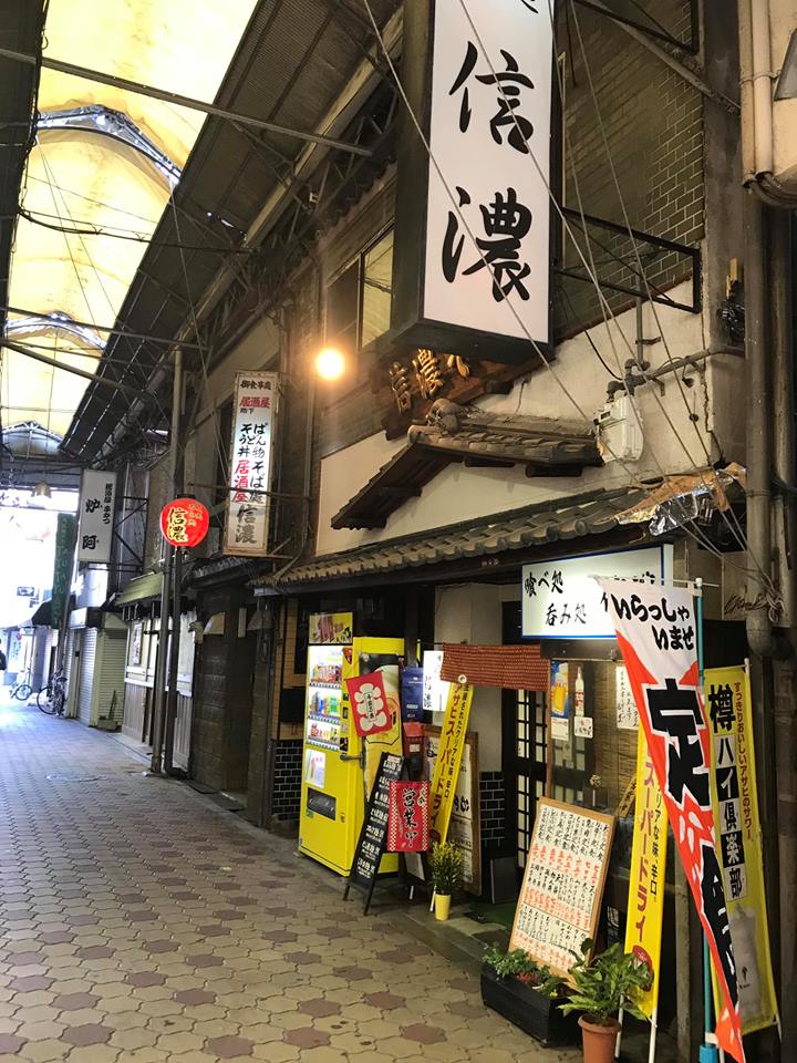 すぐ近くの阪和商店街は昔の景観が残っている商店街で古アーケード、木の柱、そして薄暗い天井があります。