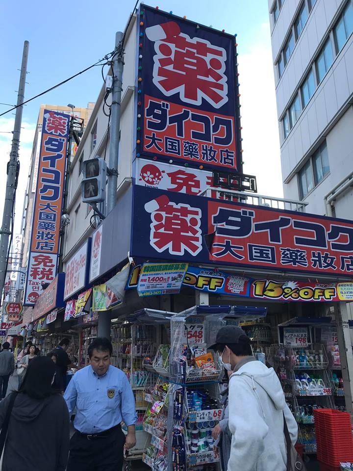 (駅を降りてすぐのダイコクドラックストア。中国語で溢れてます。)