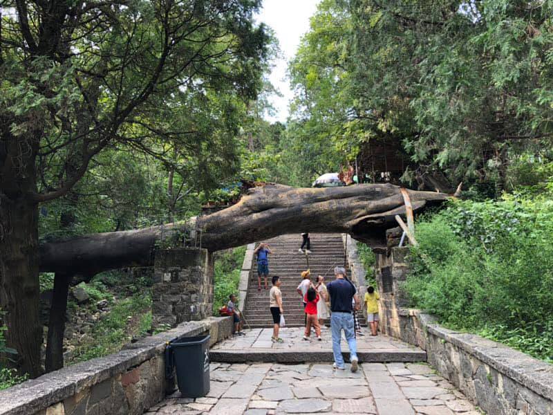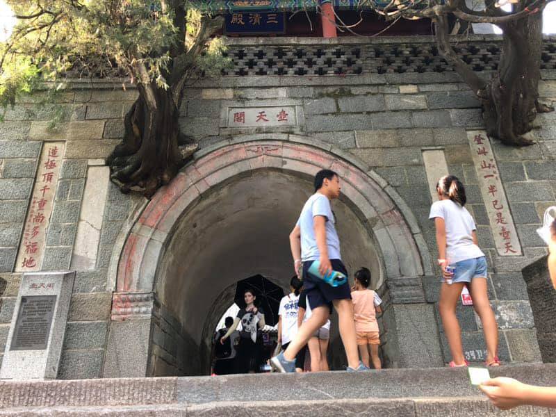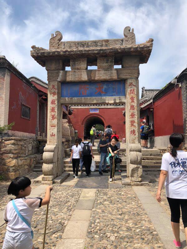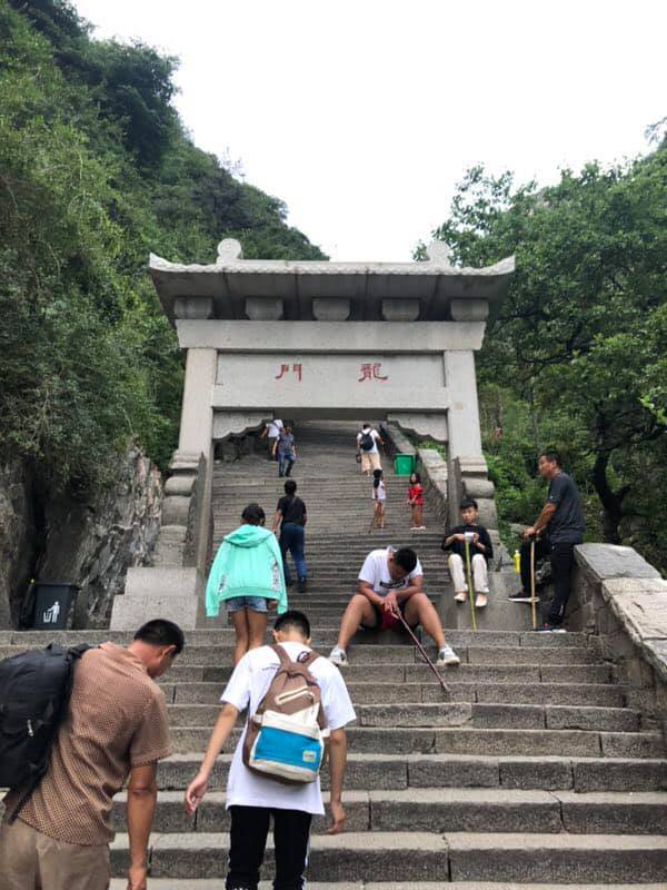 (神聖な門から入ります。由緒ある泰山登山。昔から皇帝を始め大勢の人々が登った歴史ある正面道を歩いて登ります。)