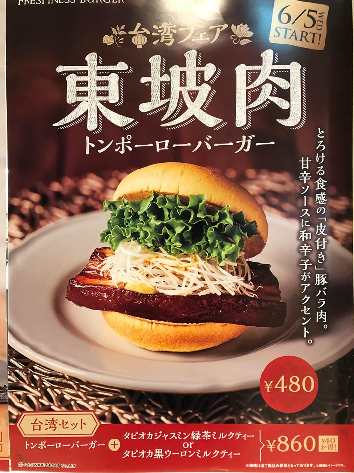 今日のマーシーの美味しい中華料理店を探せ!は純粋な中華料理ではありませんが、フレッシュネスバーガーの台湾フェアで美味しいと評判のトンポーローバーガーです。