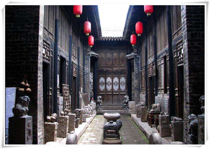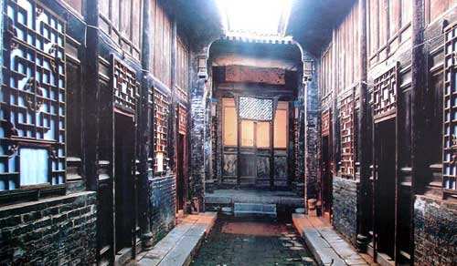 党家村には明清時代の四合院の形式の家が、昔のままの姿で残っています。この村はかつて商業で栄えた場所で裕福な人が多かったことから、北京の四合院などより作りが豪華であり、石や木や煉瓦にさまざまな彫り物が施されています。正面の奥の部屋が先祖を祭るところで、二階があったりします。