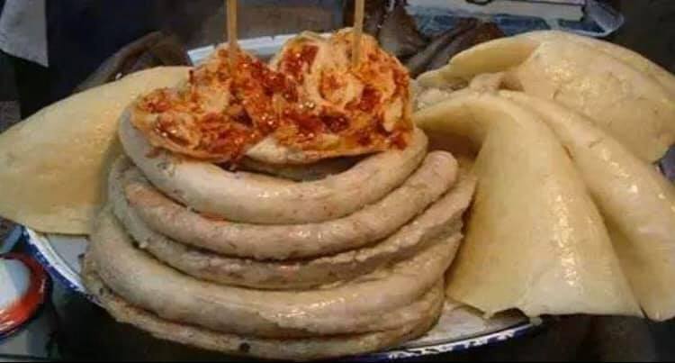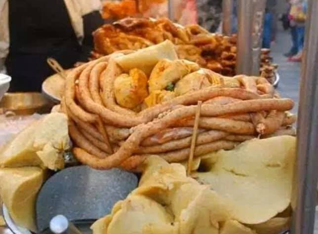 (ウズベク族の米腸子醤油で炒めた肉。)