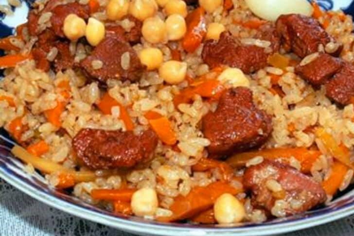 (ウイグル族やウズベク族で食べられる抓飯。)