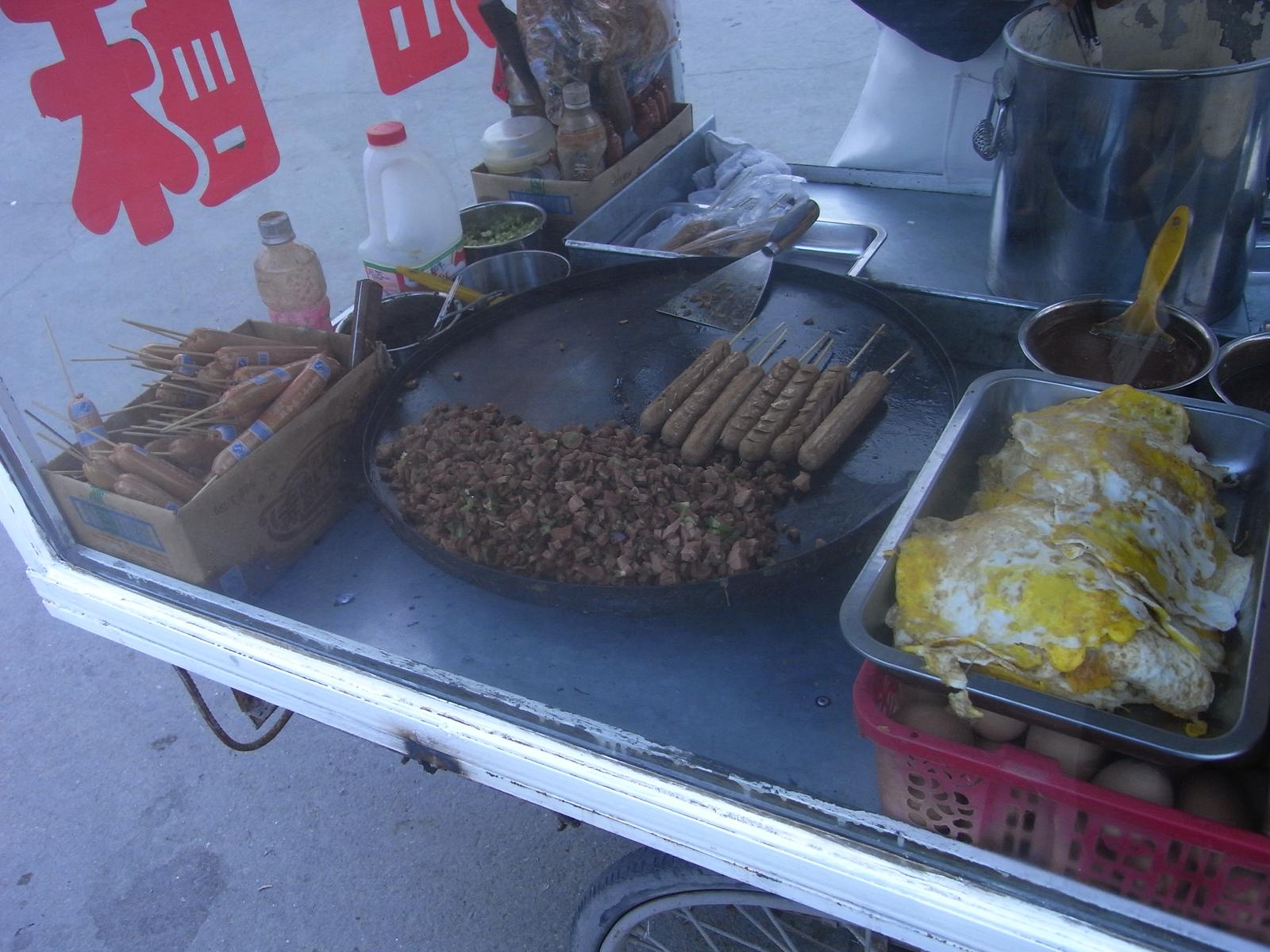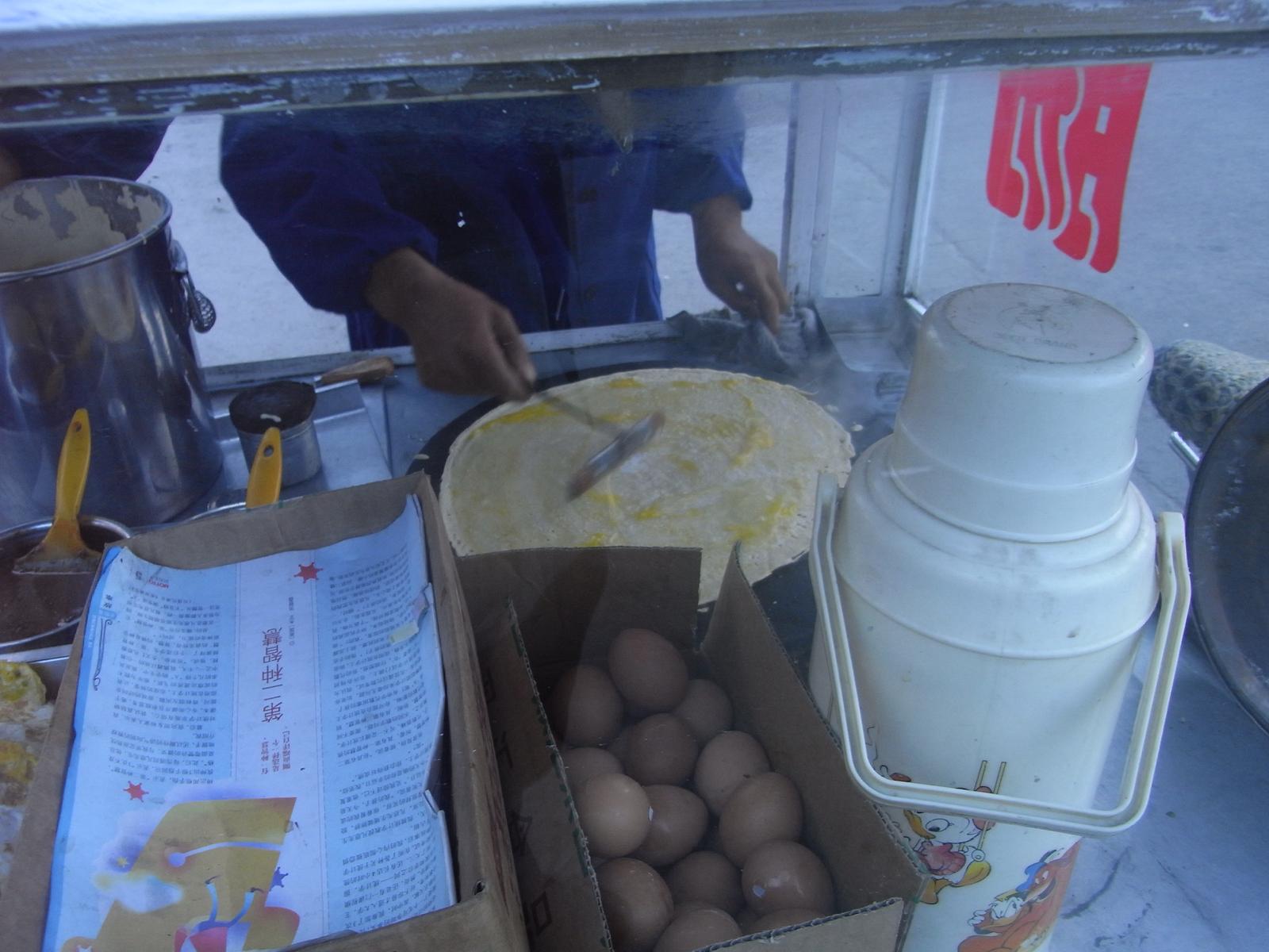 (大召老街で見たものと同じ、中華式クレープ。朝からいただきました。ウインナー入りがおいしそう!)