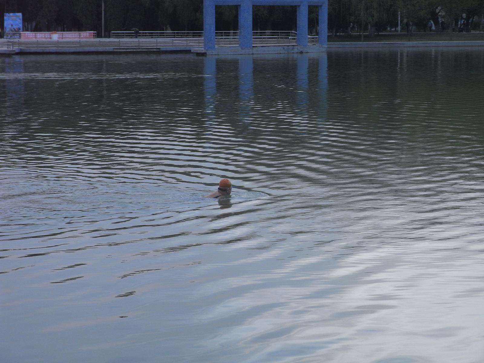(公園の池を見ると、まだ5月初旬の肌寒い時期だというのに水泳をしている元気な人の姿が数人見られ、ビックリしました。)