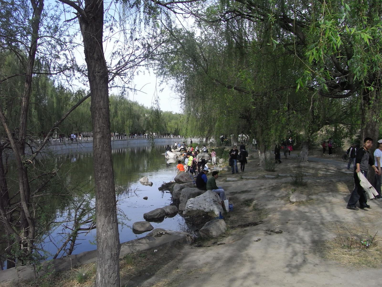 満都海公園では太極拳をしている地元の人が多かったので、それに混ざり、身体を動かしてみました。 "あんた、どっから来たの?"と太極拳をしている中国人のお姉様から聞かれ、日本からだよ"というと驚かれましたが、人なっこい笑顔でどんどん質問が来て、日本の高倉健とか昔の芸能人についていろいろ聞かれ、30分くらい盛り上がりました。帰り際、公園の池を見ると、まだ5月初旬の肌寒い時期だというのに水泳をしている元気な人の姿が数人見られ、ビックリしました。次に行ってみた青城公園では、池で釣りをしたり、結婚写真を撮っていたりする人もいたりで、公園の中にも中国の文化の一面を垣間見た気がしました。
