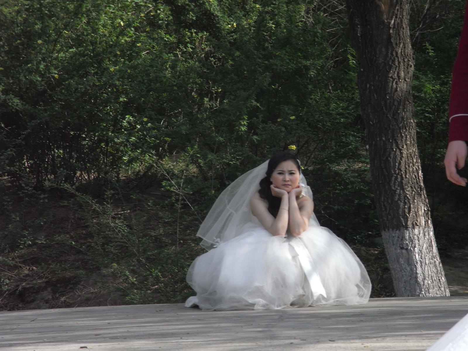 (写真撮影を待つ次の花嫁。なんか不機嫌そう??)