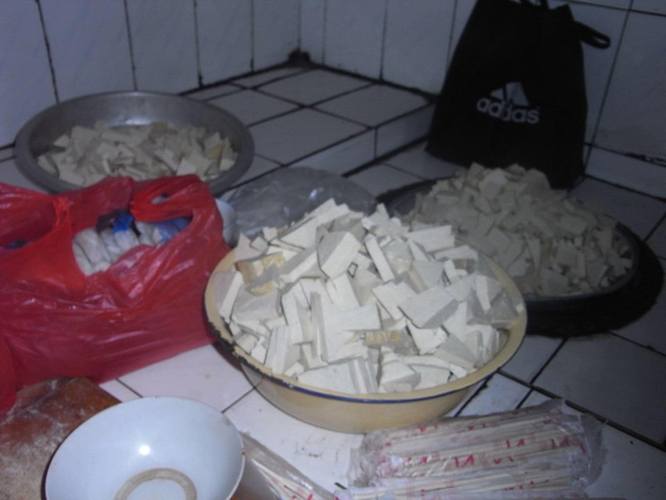 (寺院の厨房。豆腐があります。)