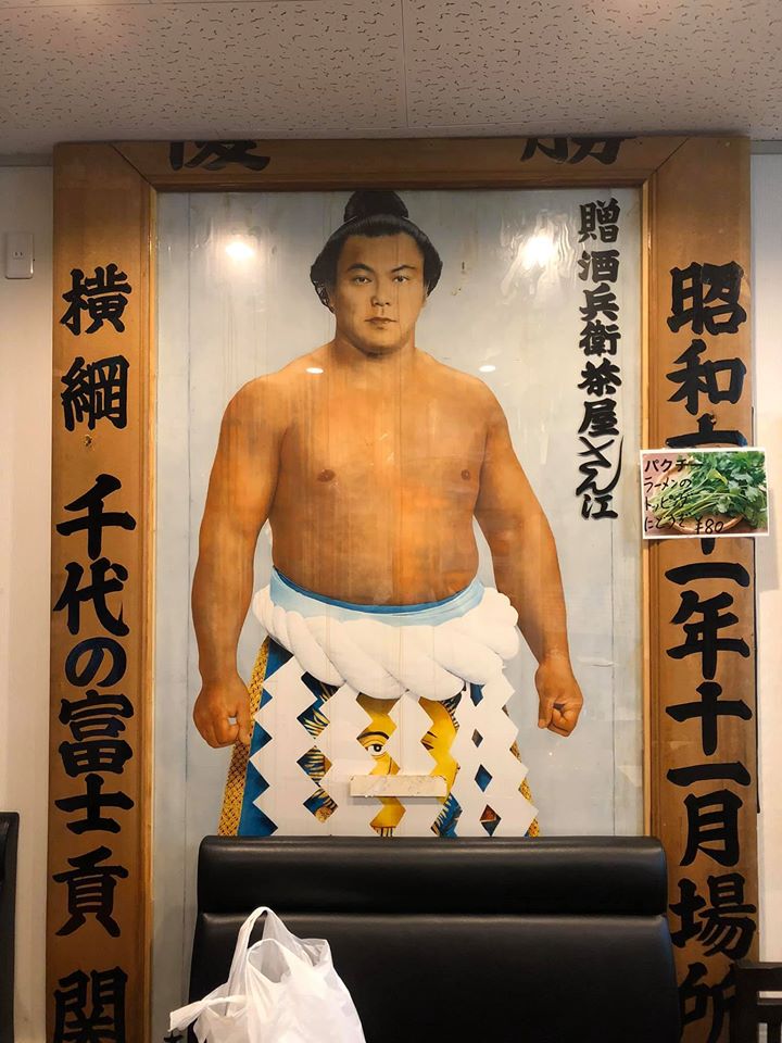 お店の中に入ると中華料理屋なのになぜか千代の富士の写真が。これはオーナーの知り合いのちゃんこ鍋屋さんから、秘伝のちゃんこ鍋のレシピとこの写真をプレゼントしてもらったもののようです。夜の営業時にはこの秘伝の味のちゃんこ鍋が予約すればいただけるようです。