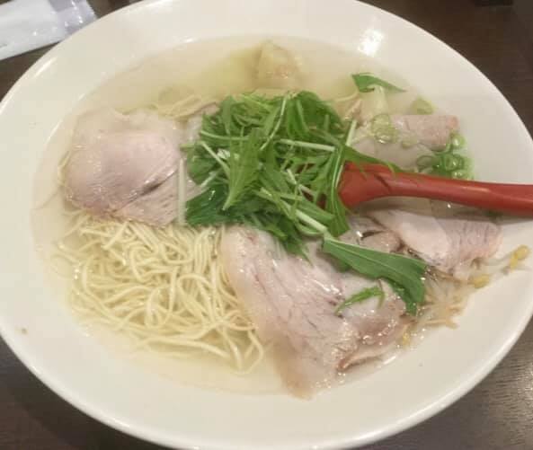 揚子江ラーメンのスープは驚くほど透明なスープですが、きりっとした塩味で、後味がほんのり甘いです。具もシンプルなものでトッピングの水菜とテーブルに置いてある揚げ玉ねぎを入れて食べるとたまらない味となります。