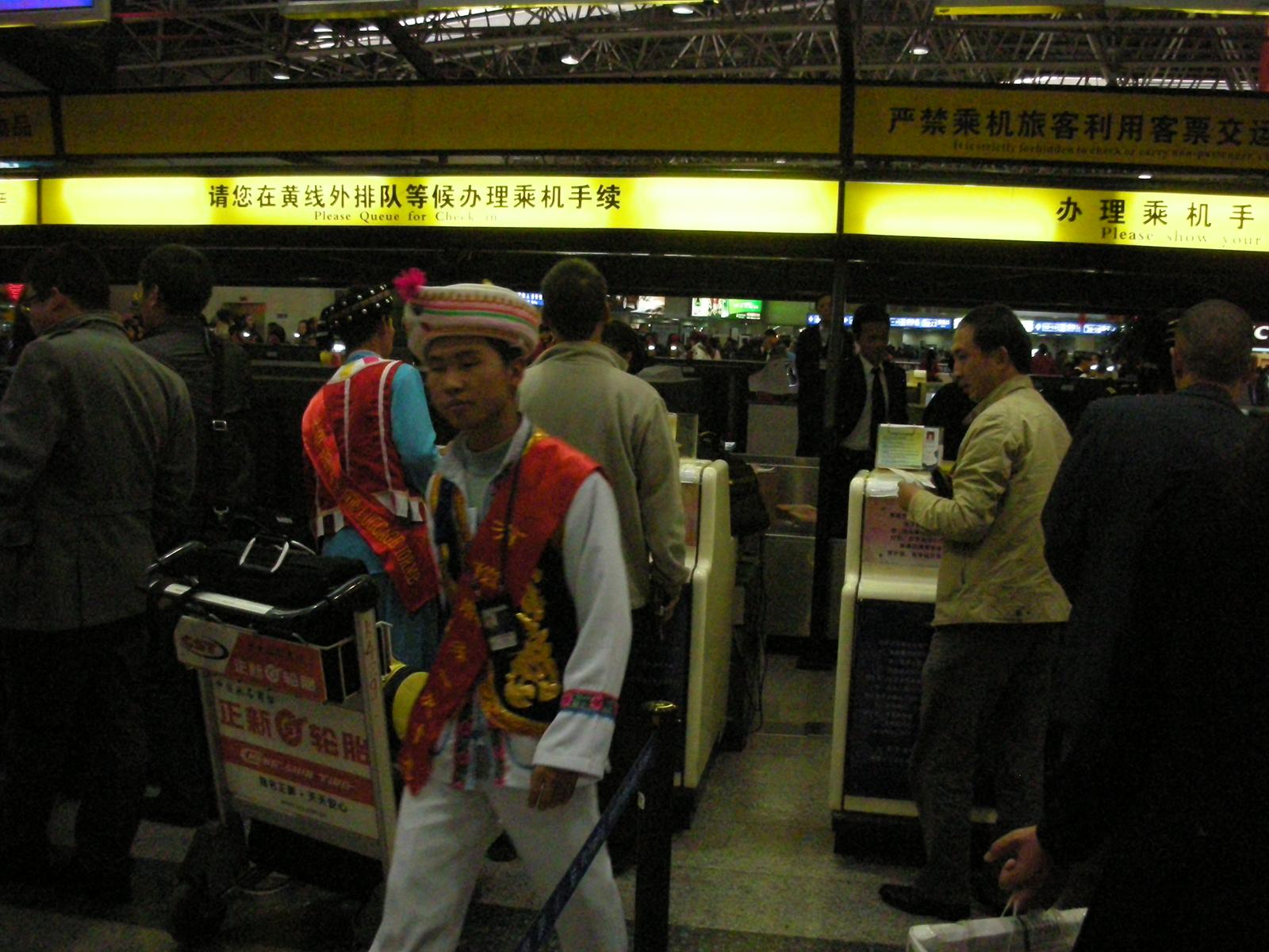 (昆明空港では少数民族の衣装を着た方々に見送られ、昆明旅行の余韻に浸りながら次の旅行地に向かいました!バイバイ!昆明!)